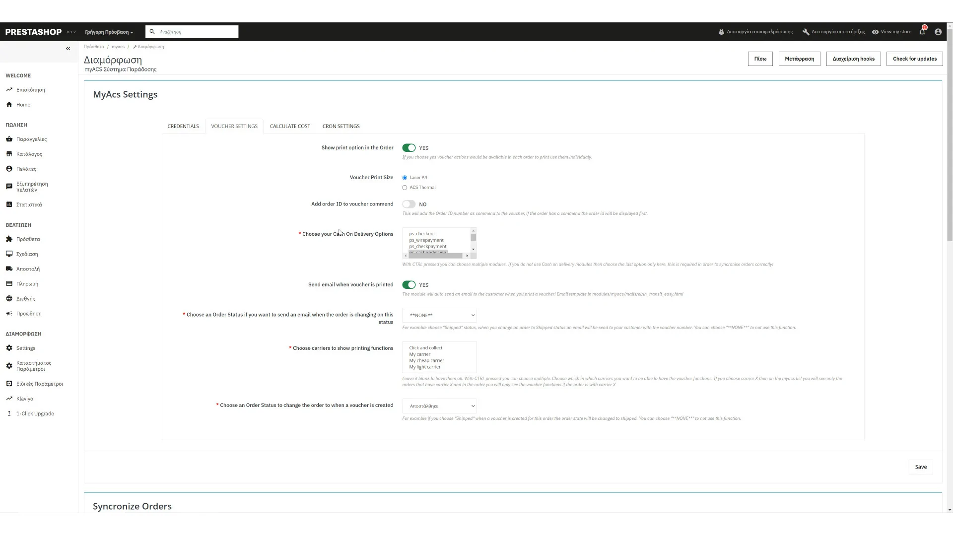 Πρόσθετο όπου επικοινωνεί με το web service της Easy Mail και εκτυπώνει voucher από το διαχειριστικό του...