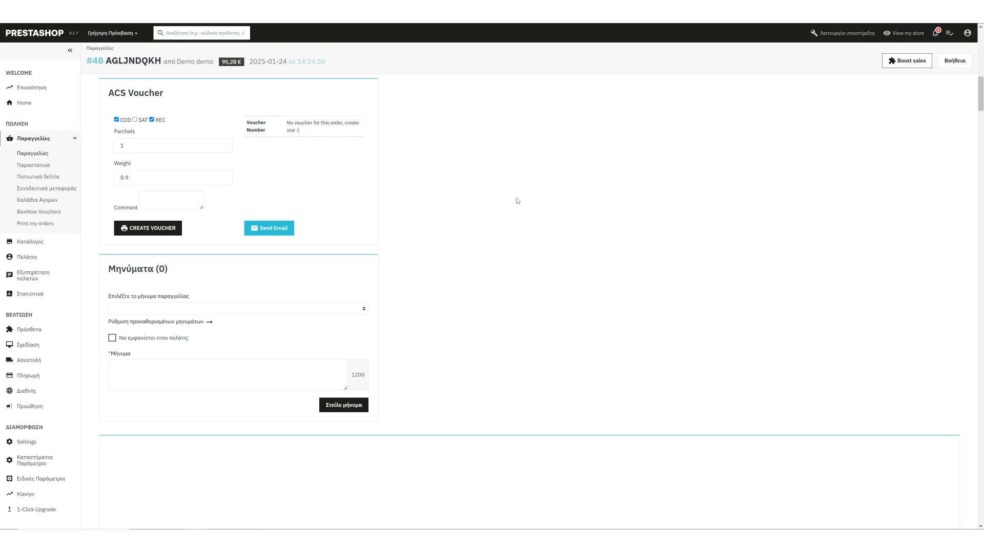 Πρόσθετο όπου επικοινωνεί με το web service της Ταχυδέμα και εκτυπώνει voucher από το διαχειριστικό του PrestaShop...