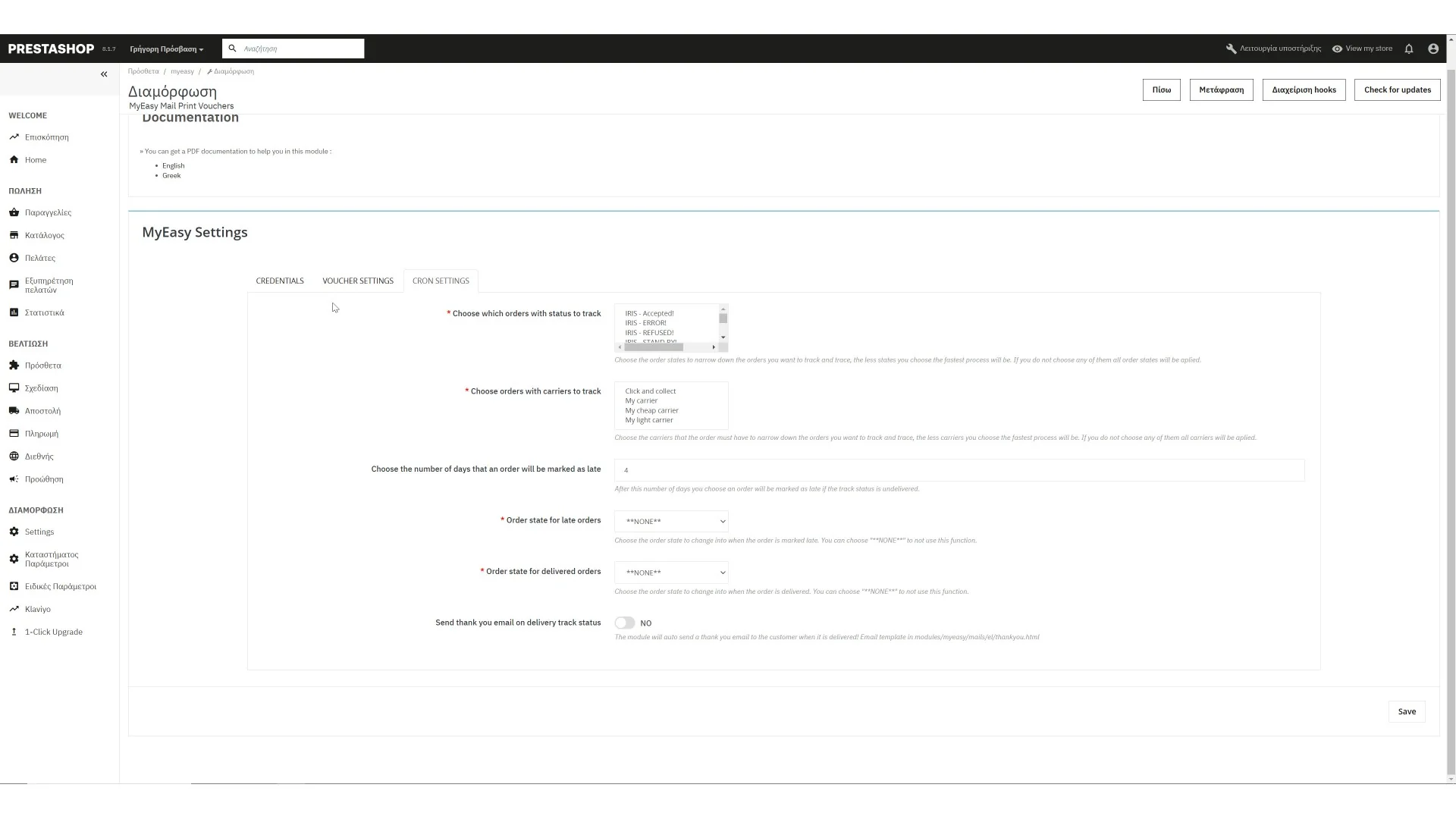 Το MyCourierCenter είναι ένα prestashop module αποστολής όπου επικοινωνεί με το API της ελληνικής εταιρείας...