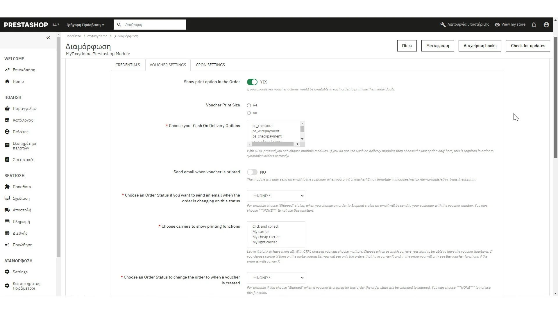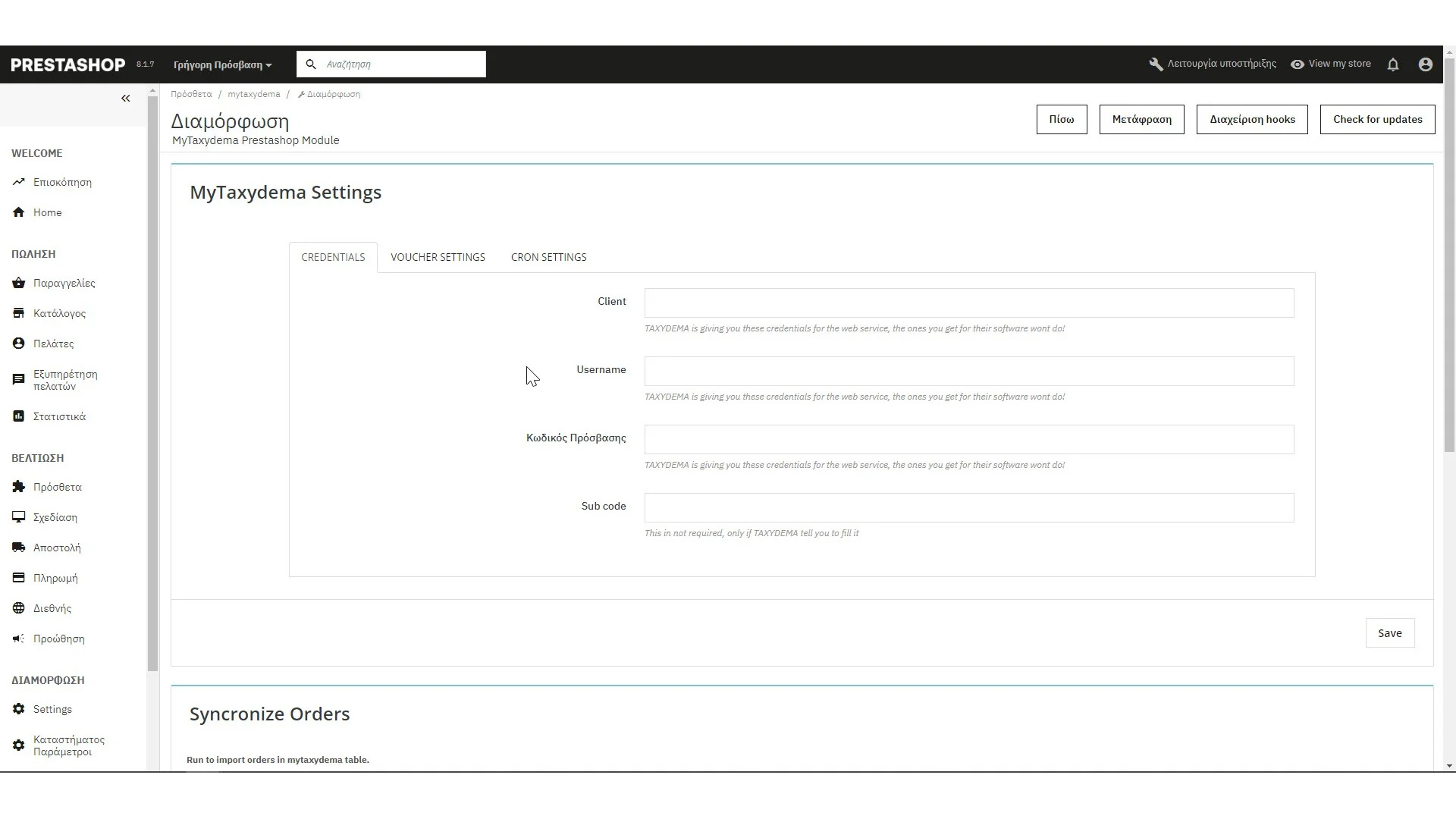 MyTaxydema PrestaShop Module Διασύνδεση με Ταχυδέμα