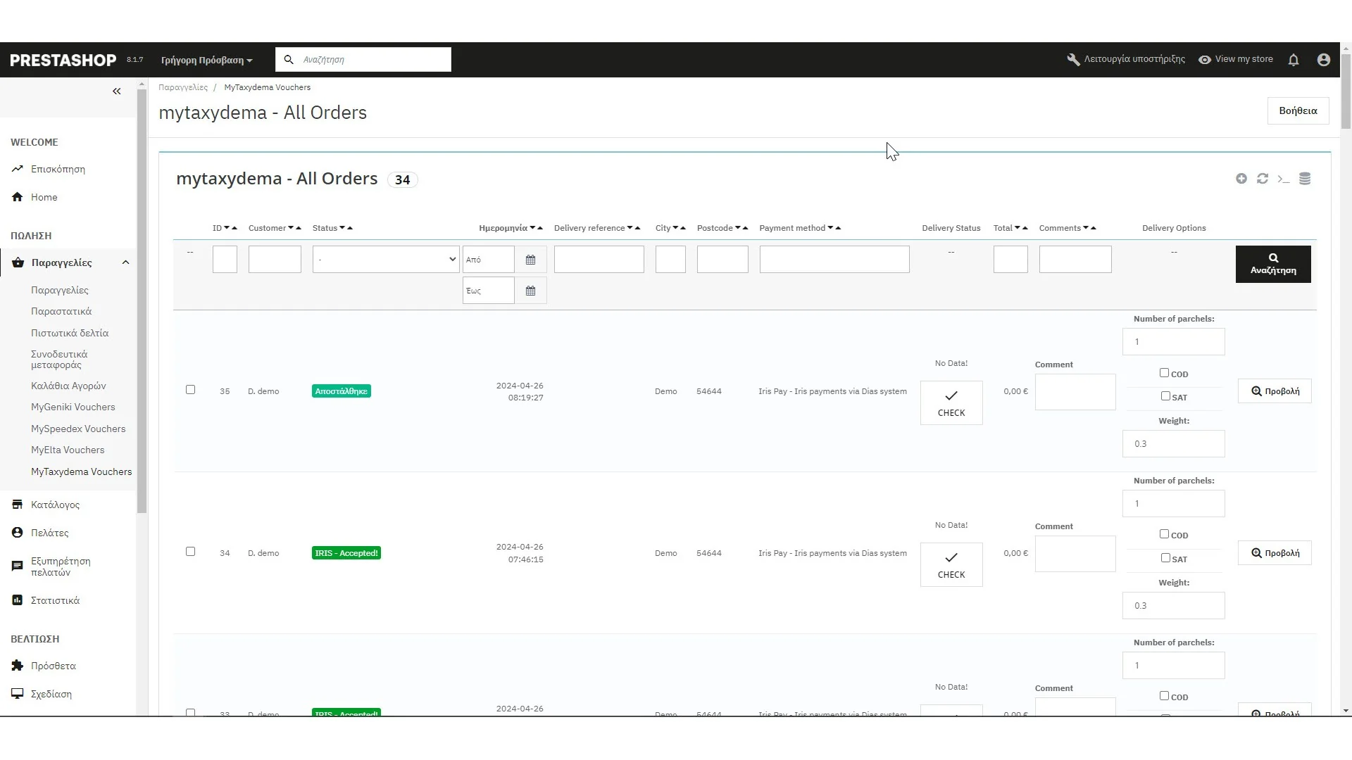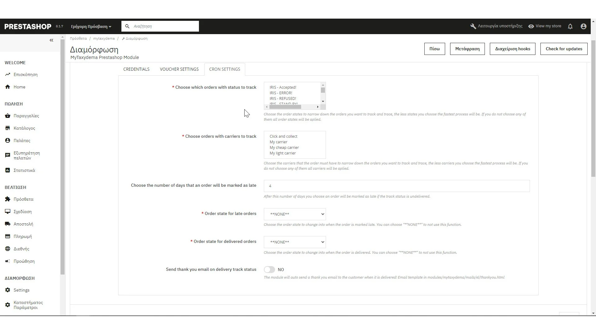 • MyTaxydema PrestaShop Module Διασύνδεση με Ταχυδέμα